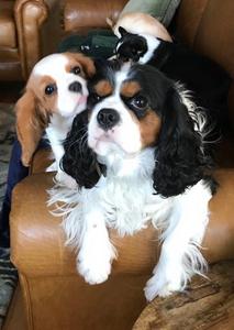 Brody Dayton of Fiddlers Green: (retired)was brought home May 2010, as a puppy. He was a gorgeous puppy with the English flair. He has Champions on both parents and 3 Grandparents lineage. He has a very solid pedigree. His temperament is very calm and collected, friendly and loving. He is an excellent example of a Blenheim Cavalier and stud dog in confirmation and temperament. He is OFA Certified for eyes and heart and DNA tested through AKC. Retired